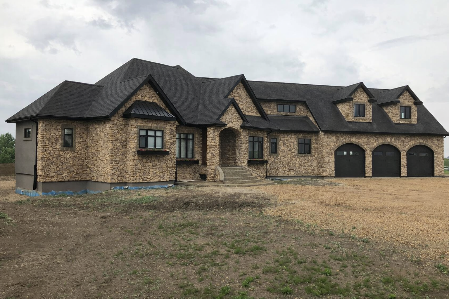 This custom home exterior project in Guy, Alberta showcases Met Exteriors’ expertise in delivering refined residential exteriors using stone cladding combined with modern exterior systems. Designed to balance visual impact with long-term performance, the exterior was completed using manufactured rustic materials paired with an EIFS (Exterior Insulation and Finish System). The thoughtful use of stone elements enhances architectural character while supporting durability and consistency across the building exterior.