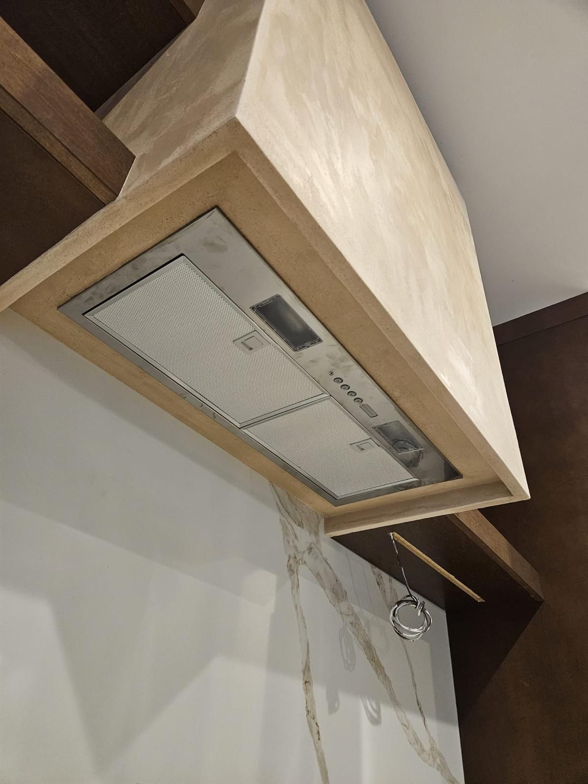 Lime plaster offers a soft, matte finish with subtle tonal variations that create depth and character. Its natural composition allows surfaces to breathe, making it both eco-friendly and durable. When applied to a range hood, lime plaster transforms a simple kitchen element into an architectural centerpiece that complements stone, wood, and metal details effortlessly.