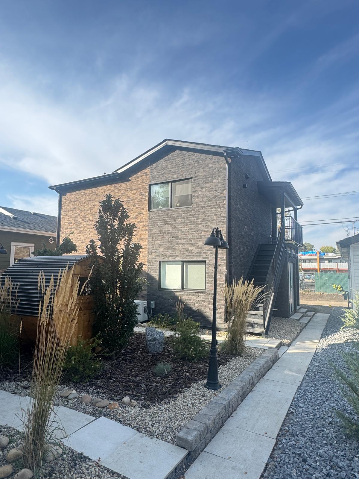 Thin brick veneer is a popular exterior cladding solution for residential construction, offering the appearance of full-depth brick with reduced weight and efficient installation. The black and brown traditional brick blend adds contrast, texture, and timeless character to the exterior while providing long-lasting performance in Alberta’s climate.