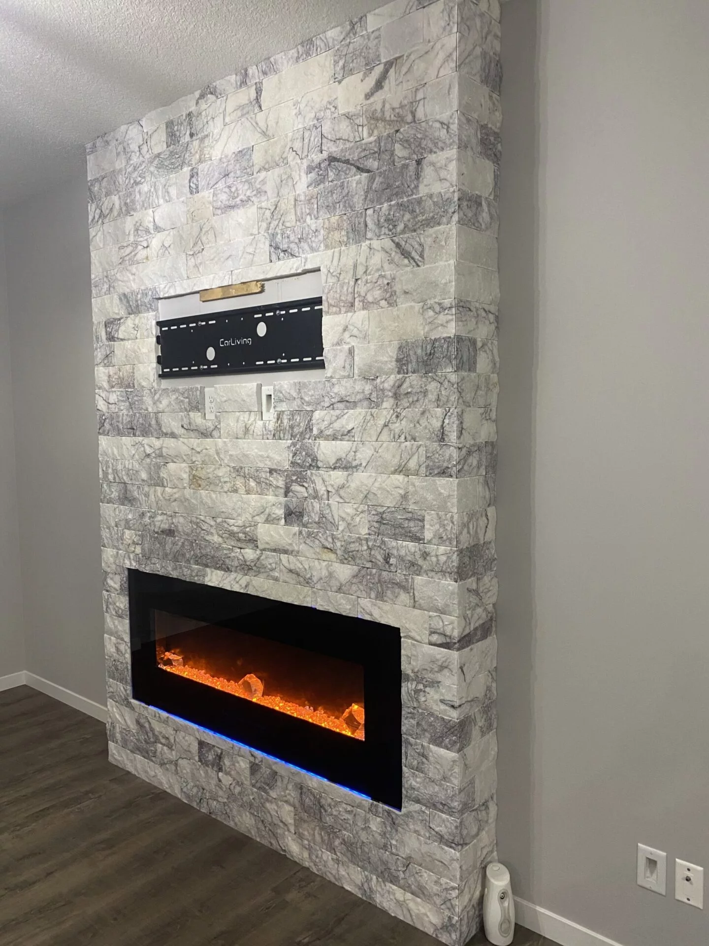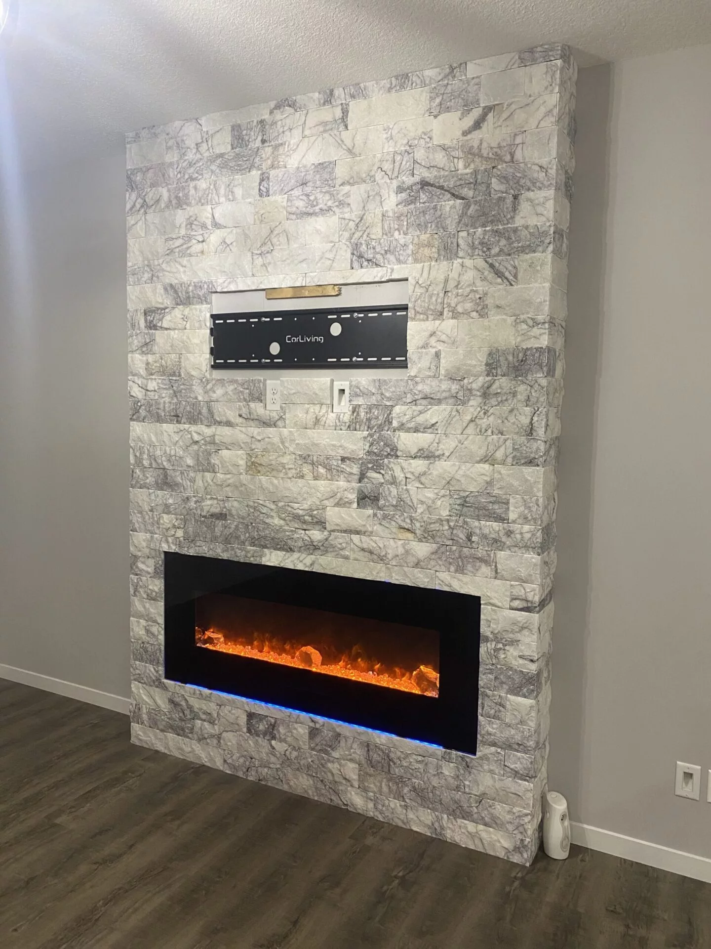 This fireplace feature wall serves as the roomโs centerpiece, blending timeless style with modern comfort. Durable, natural, and visually striking โ itโs a perfect example of how stone can transform an interior into a cozy and luxurious retreat.